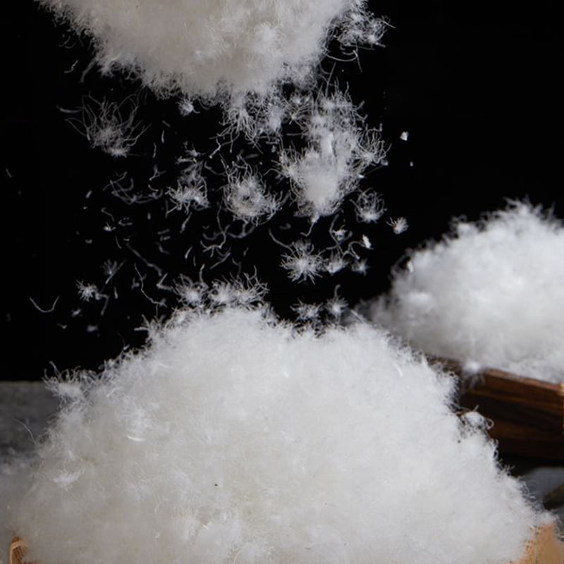 Die natürlichen Daunen stammen aus den Daunen produzierenden Kernbereichen der Weißgänse – dem Bauch, dem Hals und den Flügeln – und haben eine flauschige Struktur, die wissenschaftlich mit den flockigen Federn kombiniert wurde, um eine hervorragende Wärmespeicherkombination zu bilden. Als hochwertige tierische Proteinfaser ist jede Gänsedaunenfaser mit einem nanoskaligen dreieckigen Porennetzwerk bedeckt. Diese präzise Struktur verleiht ihm hervorragende Temperaturkontrolleigenschaften und kann den Faserspalt intelligent an die Umgebungstemperatur anpassen, um ein dynamisches Temperaturkontrollsystem zu bilden. Wenn die vom menschlichen Körper abgegebene Wärmeenergie mit der Daunenschicht in Kontakt kommt, kann die Porenstruktur die Wärme effizient absorbieren und einen Wärmekreislauf bilden, während gleichzeitig eine mehrdimensionale Wärmeisolationsbarriere aufgebaut wird, die das Eindringen kalter Luft wirksam blockiert und ein lang anhaltendes warmes Tragegefühl schafft.